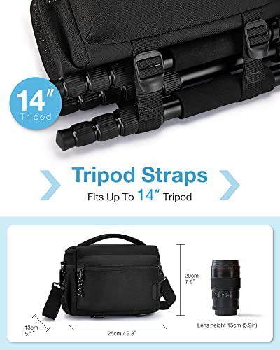 BAGSMART Camera Bag, Small Camera Case with Tripod Holder, Compact Camera Shoulder Bags for DSLR/SLR/Mirrorless Cameras, Waterproof Crossbody Camera Bag Women Men, Black